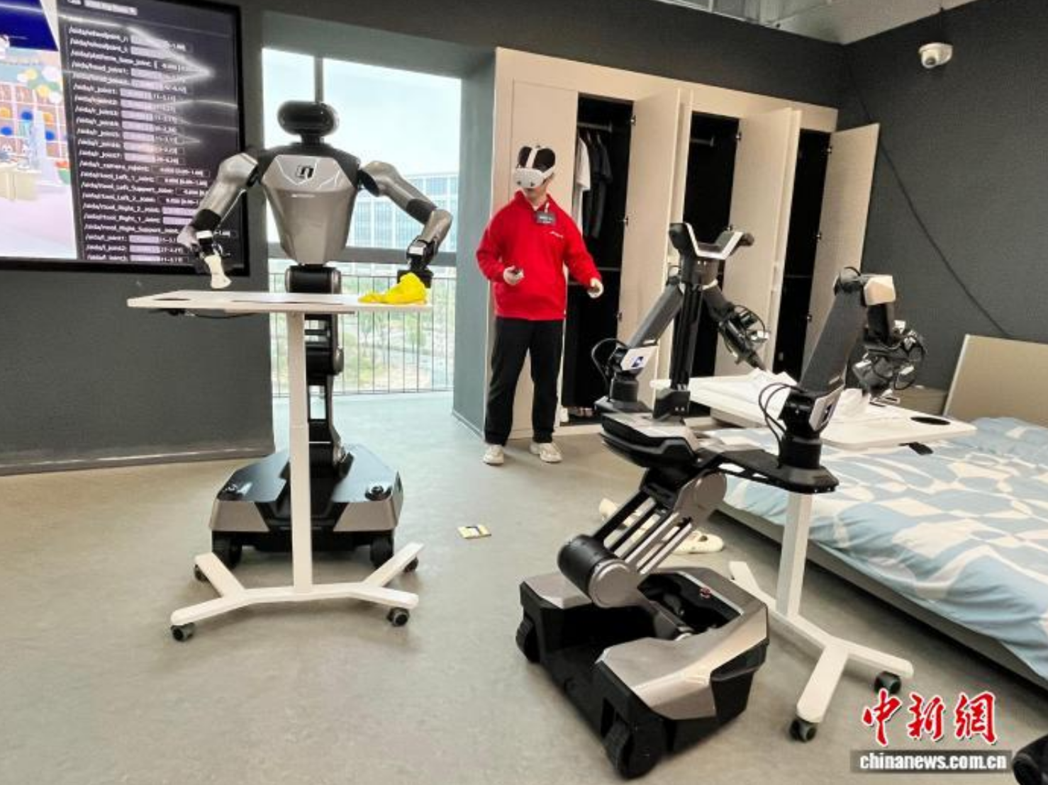 在湖北武汉,数据工程师操控机器人开展数据采集、仿真训练等任务(资料图)。张芹 摄