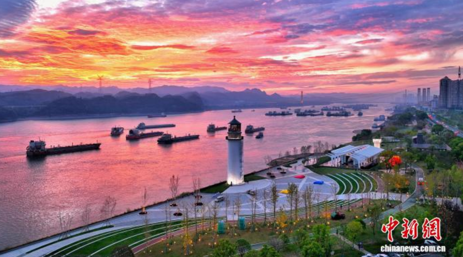 在湖北宜昌,腾退的长江岸线成为风景优美的灯塔广场(资料图)。 周星亮 摄